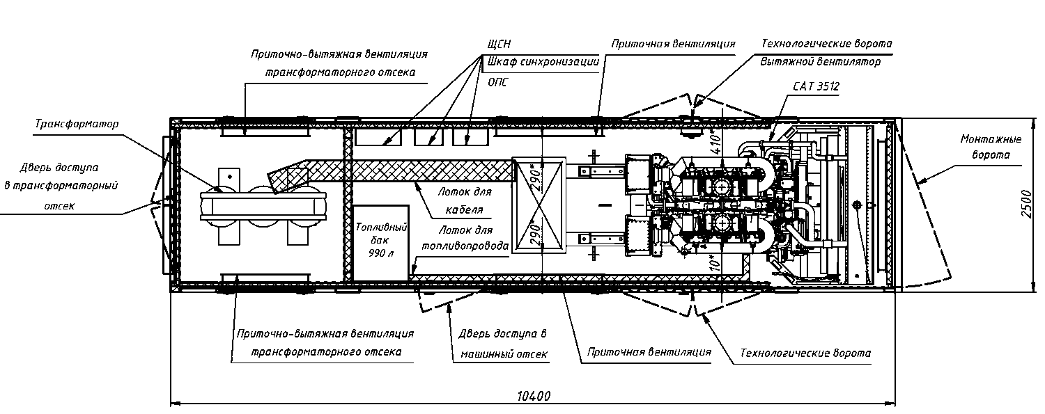 - Возможность установки ДГУ под открытым воздухом без необходимости возведения отдельного здания.