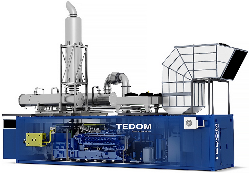 Koгенерационные установки TEDOM серии Quanto входят в число машин высокого диапазона мощности, работающих на базе промышленных газовых двигателей MWM. Блочная компоновка этих установок включает двигатель-генератор и комплект теплового оборудования - глушитель выхлопа и электрический распределитель с управляющей и силовой частью.